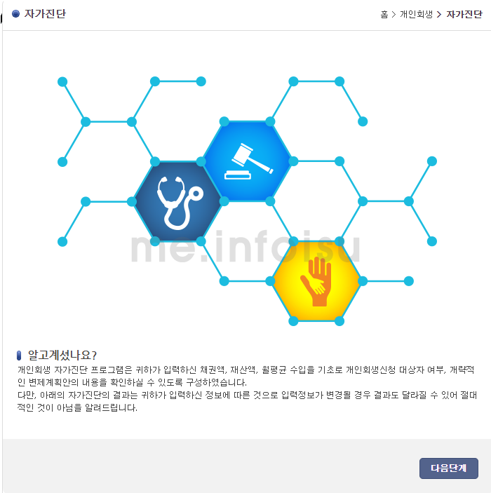 2. 개인회생 > 자가진단 메뉴 접속
