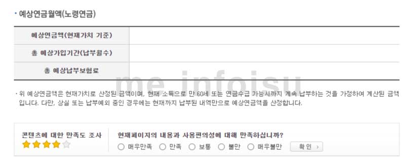 해당 페이지 에서는 예상연금 월액 뿐만 아니라 현재까지 납부한 보험료 및 납입 기간 등에대해서도 함께 확인 가능합니다.