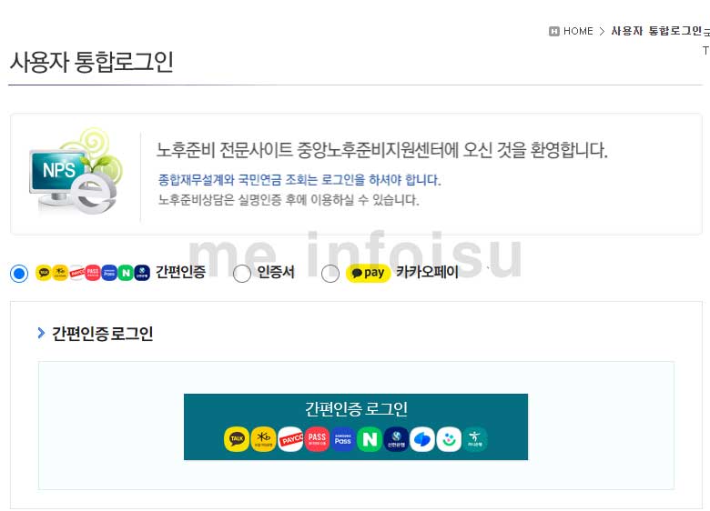 3. 간편인증, 인증서, 카카오페이 중 선택하여 사용자 통합로그인 진행