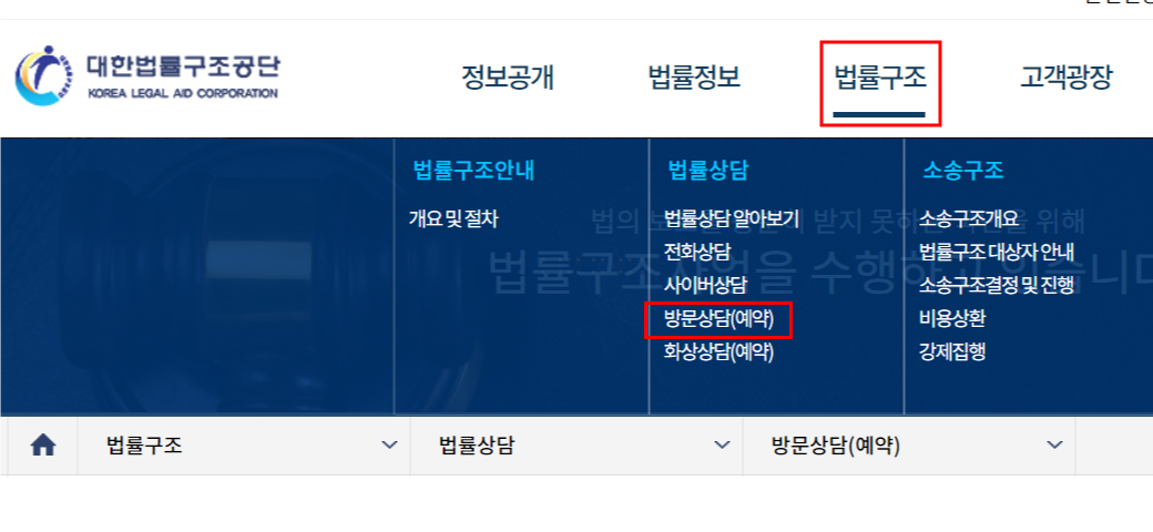 2. 법률구조 > 방문상담(예약) 메뉴 선택