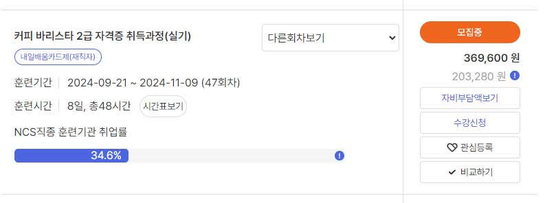바리스타 자격증 국비지원 교육비