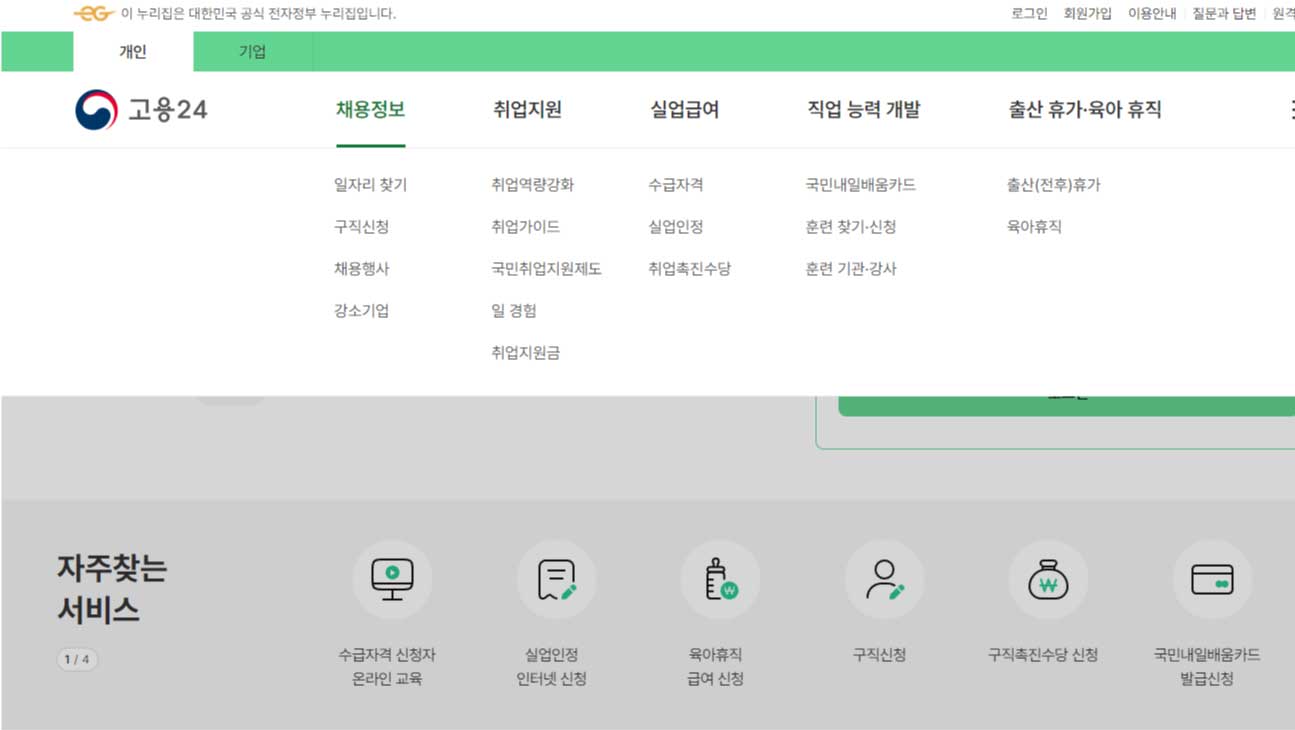 1. 고용24 홈페이지 접속
