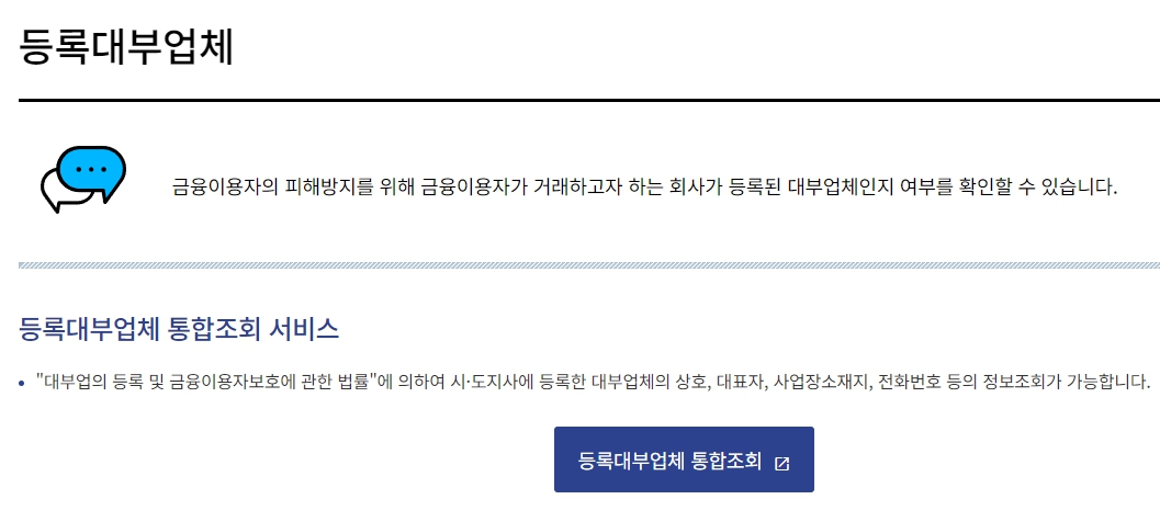 해당 업체가 정식 대부업체인지 확인하는 방법은 금융감독원을 통해서 직접 조회를 해보면 되는데, 구체적인 방법에 대해서 안내해 드리도록 하겠습니다.