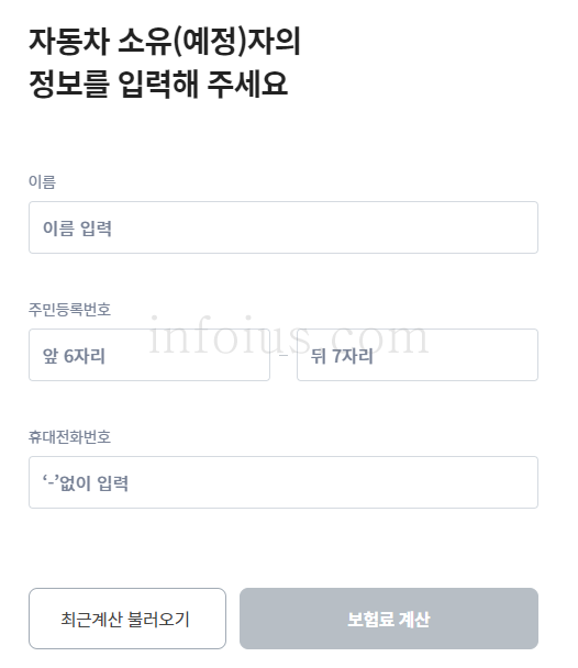 2. 자동차소유(예정)자의 정보 입력(이름, 주민등록번호, 휴대전화번호)